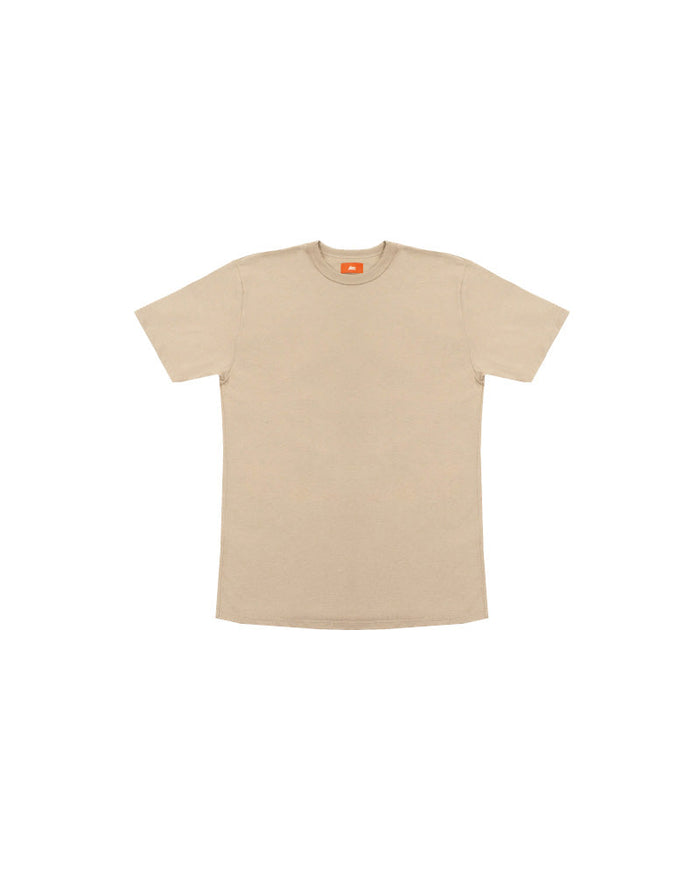 Men's basic regular-fit sand-colored T-shirt, made from 250g soft 100% cotton, with a classic cut. A versatile essential.
