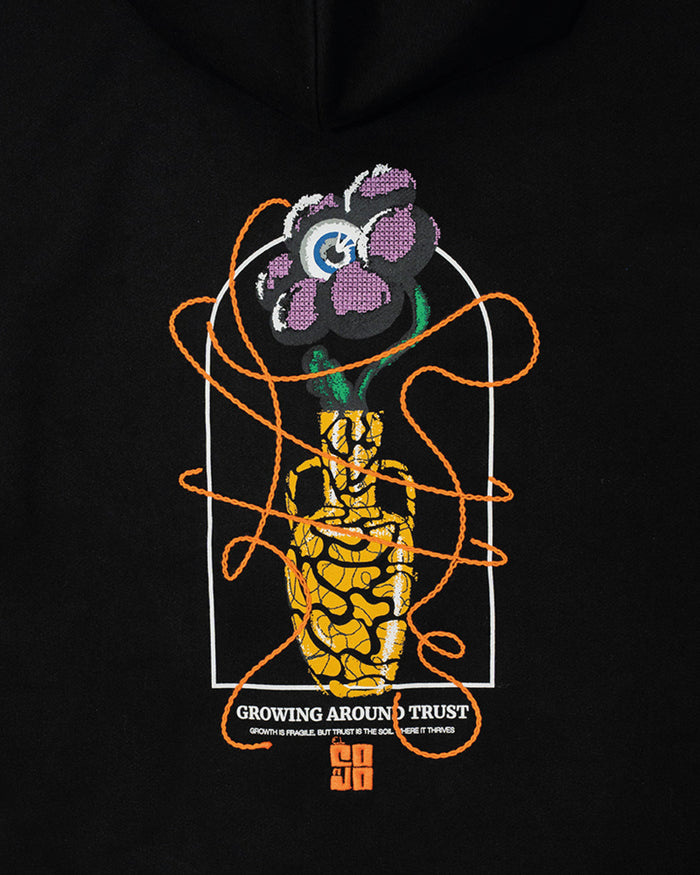 Unisex El Cojo Collaboration Hoodie in black, featuring exclusive embroidered and printed artwork. A garment steeped in history, design, and personality.