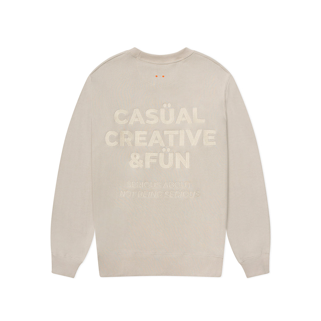 Buzo color beige con detalle de letras bordadas en parte posterior, cuello redondo, una prenda básica con un toque original para combinar con todos tus looks diarios.